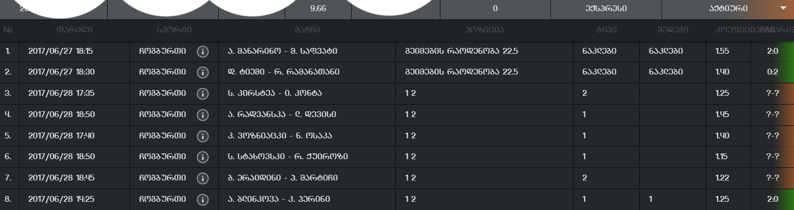 მერე იტყვიან ტენისში თამაშები არ იყიდებაო :@:@:@ სულ ქალები ასხავენ სულლლლ :@:@ დედის სისხლში ######. რასაც ვწერ კაცებს 100დან 2ს თუ გაუმაზია და ქალები 100დან 80 მაზავს მაგათი დედის პირი #####ან.ტენისში ქალზე არ უნდა დადო რა :@:@