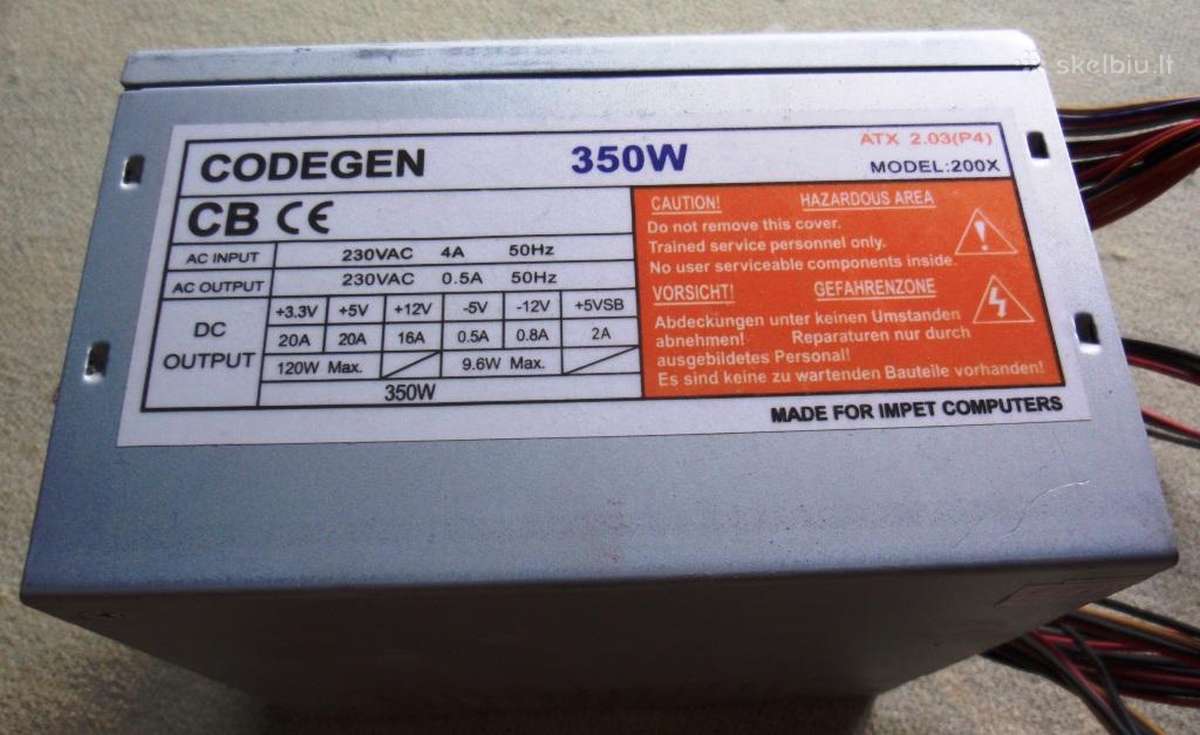 კვების ბლოკი Codegen, 350-ვატიანი, მუშაობს გამართულად და უპრობლემოდ.