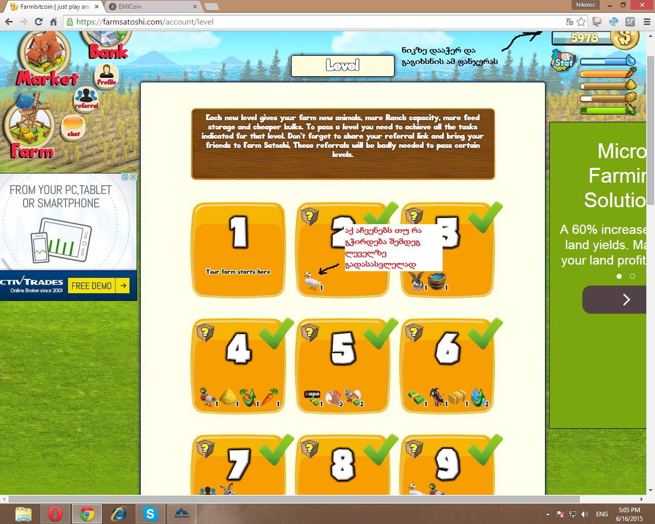 praista11 დასაწყისისთვის მარცხენა მხარეს ღილაკებს შენიშნავ Farm,Market, Bank :