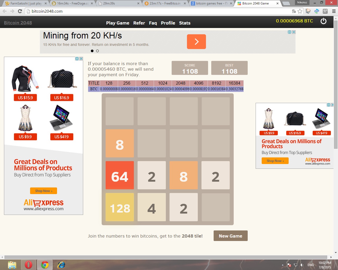 აბა 2048 ვინც იცის ეს თამაში შეგიძლიათ ბიტკოინები გამოიმუშაოთ ბევრს გეცოდინებათ ალბათ ვინც არ იცით დამირეფერალდით
