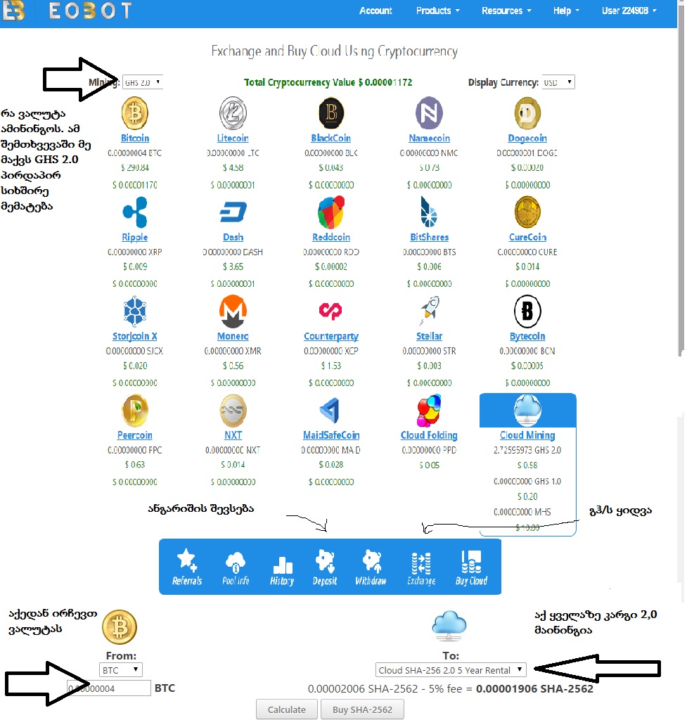 4437 სატოში გამოდის კალკულატორზე ეხლა 10გჰ/ს დან მოგება მე 13გჰ/ს მაქვს მანდ ეხლა ეობოტზე ვრიცხავ მომეწონა კაი პონტია 2.7გჰ/ს მაქვს ეობოტზე შეგიძლია 1 დოჯიდან დაიწყო მაინინგი 0.58$ ღირს 1გჰ/ს და ყოველწამში გერიცხება ამასთან შეგიძლია მიუთითო და გჰ/ს ამინინგო ანუ გჰ/ს გემატება ყოველწამს