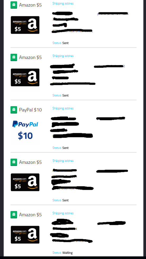 gogicha93აქ ცოტა სხვანაირადაა. ორი კატეგორიის ქულებია GN და VP. GN ქულების გამოყენება შეგიძლია მხოლოდ prizes ში მოცემულ ნივთებზე ან სასაჩუქრე ბარათებზე. რომელის თვეში ერთხელ აქტიურდება ამოწურვამდე. რაც შეეხება VP ქულებს ამ ქულებით შეგიძლია იყიდო store ში მოცემული ნივთები თუ სასჩუქრე ბარათები. ამათი გამოწერა ნებისმიერ დროს შეგიძლია და შეზღუდული არაა. გამოგზავნა ხდება გამოწერიდან დაახლოებით 1 თვის მერე.