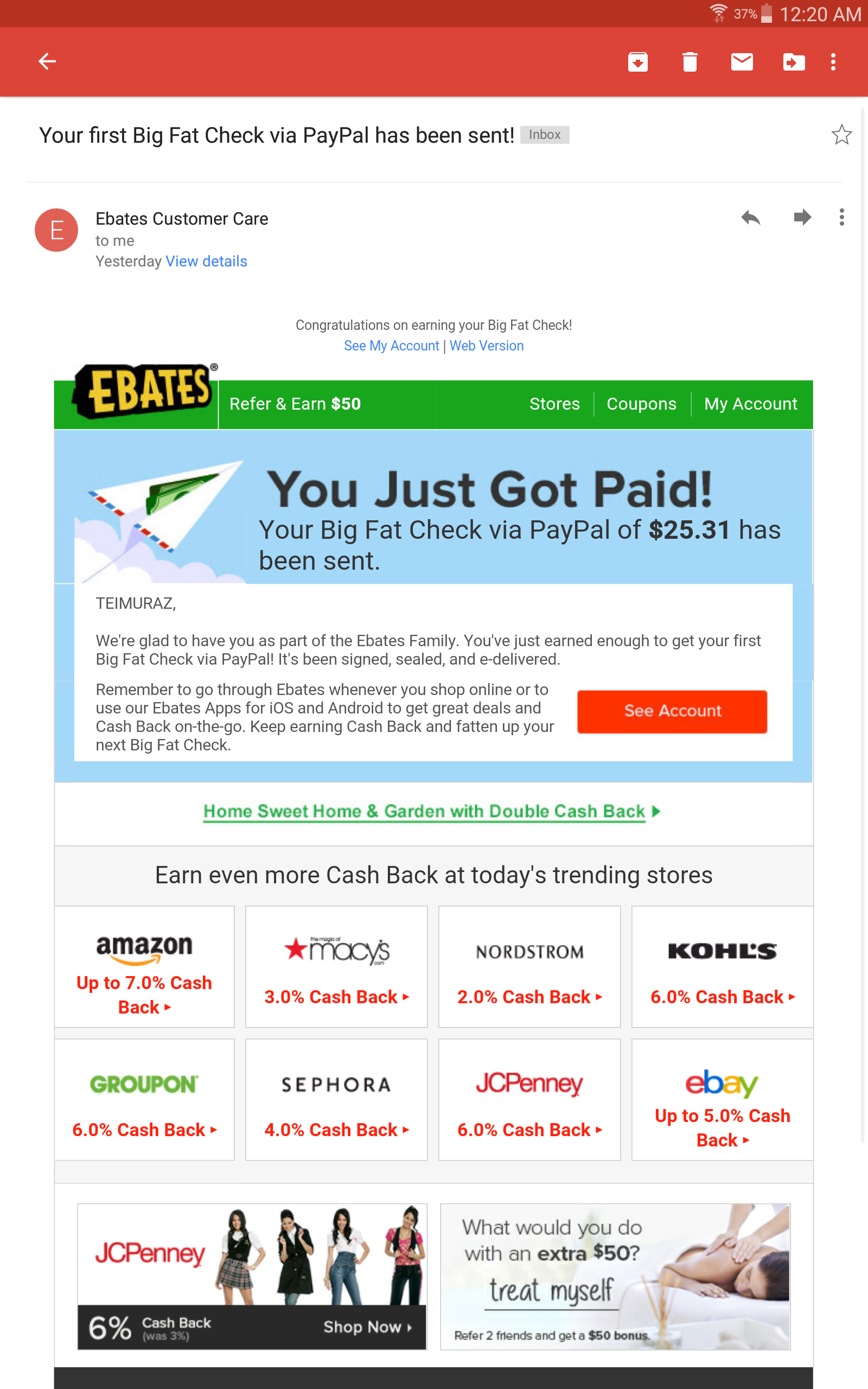 დაირიცხა რა ტუფტაზე მოვიდა მეილ და ქეშბექსი ეგ თანხა დამაკლდა საერთოდან