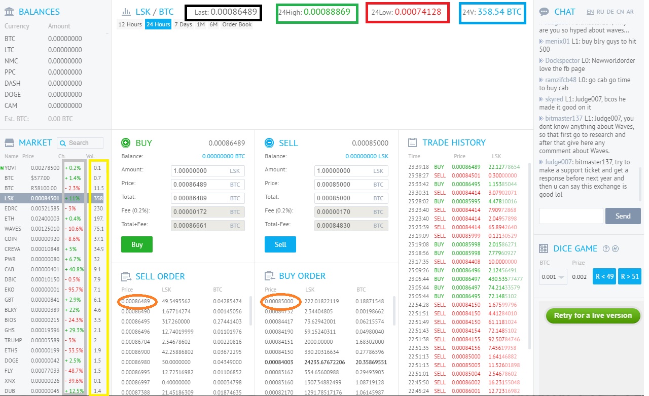7 სტაფილოსფერი - სტაფილოსფერში მოვნიშნე ვალუტის ორივე ფასი მაღალიც და დაბალიც ეს იმიტომ გავაკეთე რომ ასევე ამასაც მიაქციოთ ყურადღება რაც მეტია სხვაობა კონკურენციას მეტს გაუწევთ მაგალითისთვის მოვიყვან 2 სიტუაციას : 1. ვიყიდეთ რომელიმე ვალუტა 1 სატოშად იყიდება 2 სატოშად დავადებთ ამ ფასს და ველოდებით მანამ ვინმე არ იყიდის მეტის დაწევის საშვალება არ გვაქვს და ვიჭედებით ჩვენი ფული შეილება 1-2 თვეც გაჩერდეს და ვერ გავყიდოთ. 2. ვიყიდე 8000 სატოშად და გასაყიდი ფასი 9500 სატოშია ამდროს შეგვიძლია სურვილისამებრ კონკურენცია გავუწიოთ სხვა გამყიდველებს ფასი ხელოვნურად დავწიოთ 1-2 სატოშით ამას მოგება საშვალებას იძლება 8100 დაც რომ გაყიდოთ მაინც ხომ არაფერია ზარალი და გაცილებით მეტიც დაგრჩებათ მოგება. მიაქციეთ ყურადღება ვალუტის ბრუნვას და დააკვირდით რამდენიმე ვალუტას რომელიც ძირითადად ჩამონათვალის თავში ექცევა . იმედია დაგეხმარებათ რამეში ჩემი რჩევა და ცოტა მეტი ინფორმაცია მაინც მიიღეთ