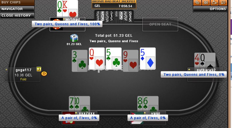შენ კარტს მანდ მნიშვნელობა არ აქვს გინდა KK გქონოდა გინდა Q7-o