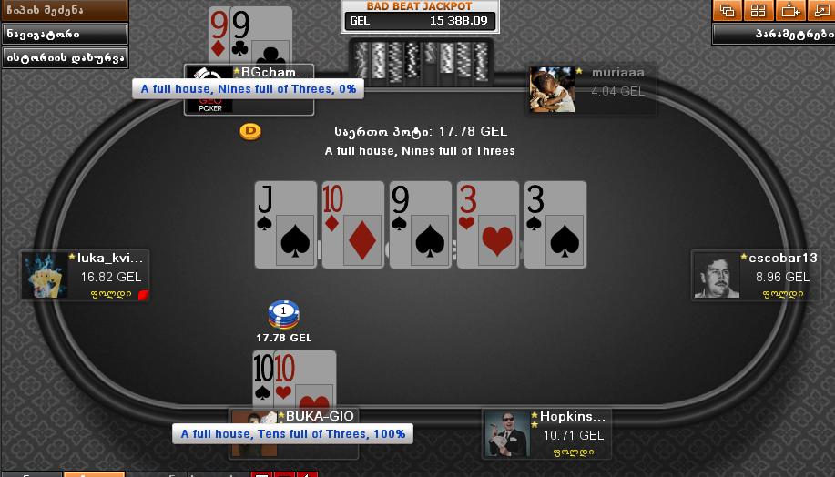 ორჯერ ვნახე დღეს NL20-ზე 150-180 ლარიანი მასტები... აბსოლიტურად ყველაფერში იგებდნენ 2-2 BI მე ვაჩუქე ორივეს... ერთს NL100 გავყევი და იქამდე ვიჯექი სანამ არ გასტეკეს