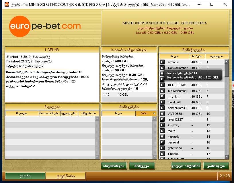 ტურნირებზე ძაან სუსტები თამაშობენ მიკროებს, ზემოთაც ფაქტიურად, მაგრამ ხშირად არ მითამაშია მანდ და ვერ დავიჯინებ.