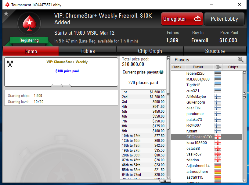 ხოდა კიდე ვინც ხარ მინიმუმ ჩრომ ვიპ სტატუსის მქონე არ გამოტოვოთ 10K GUARANTEED .. სრულიად უფასოდ რომელიც იწყება საგამოს 20:00 ზე