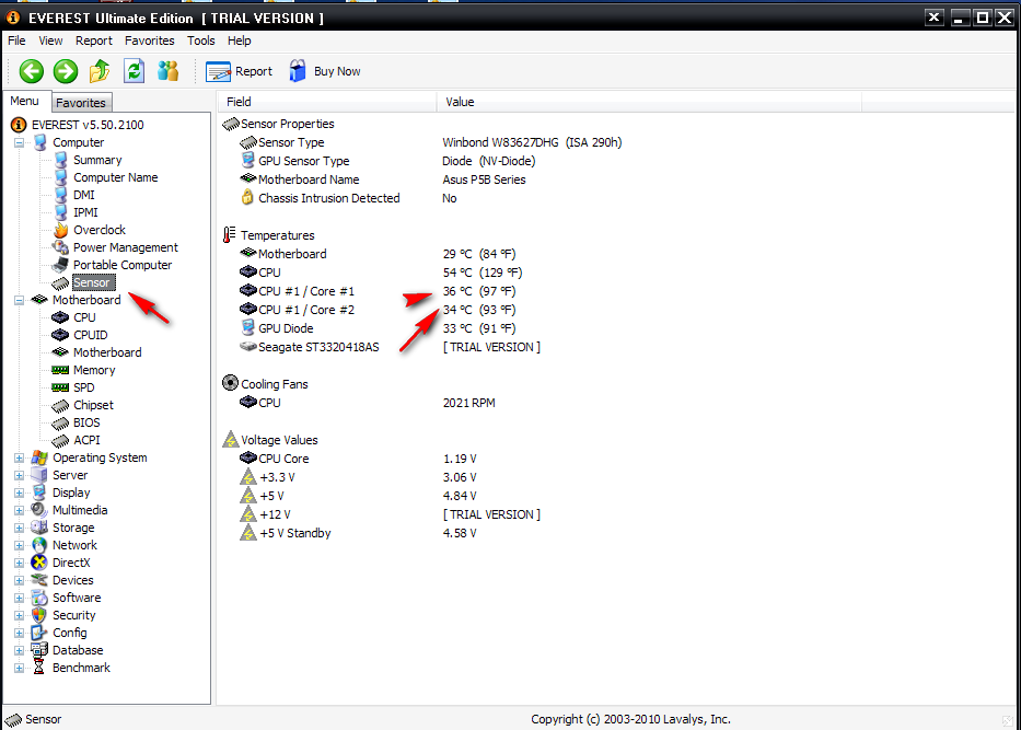 არ აჩვენებს რატომღაც CPU-Z ტეპმერატურას ეგ დედანაქაჩი თუ გასწორდა კაია მაგრამ ყოველშემთხვევისთივ რომ შეამოწმო პროცესორი ხო არ გიცხელდება გადმოწერე პროგრამა ევერესტი შედი სენსორში და სურათი გადაიღე და დადე როგორც სურათებში მივუთითე ორივე ბირთვის რომ ჩანდეს ტემპერატურა