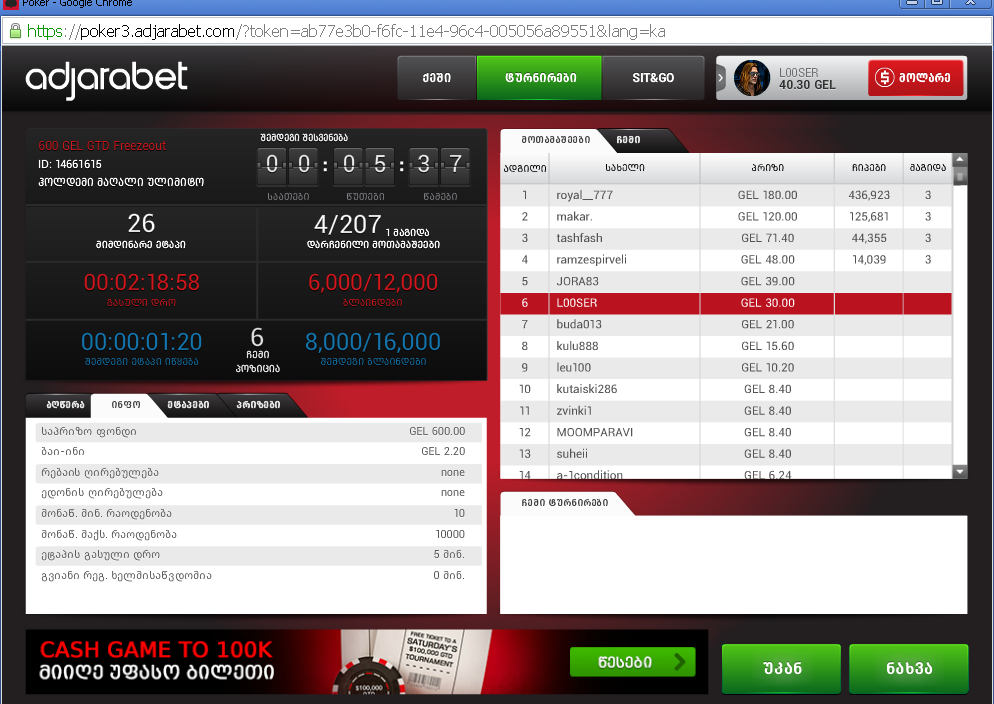 , 100 000$ FREEZEOUT EVERY SATURDAY 21:00