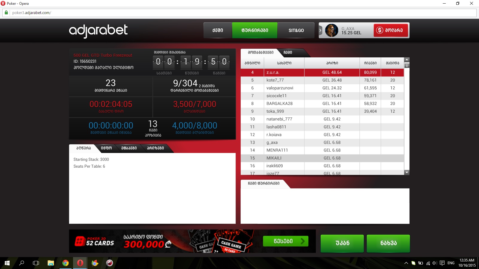 ბოლო ორი ხელი ცუდად ვითამაშე და გამოვვარდი ჩემი ბრალი იყო