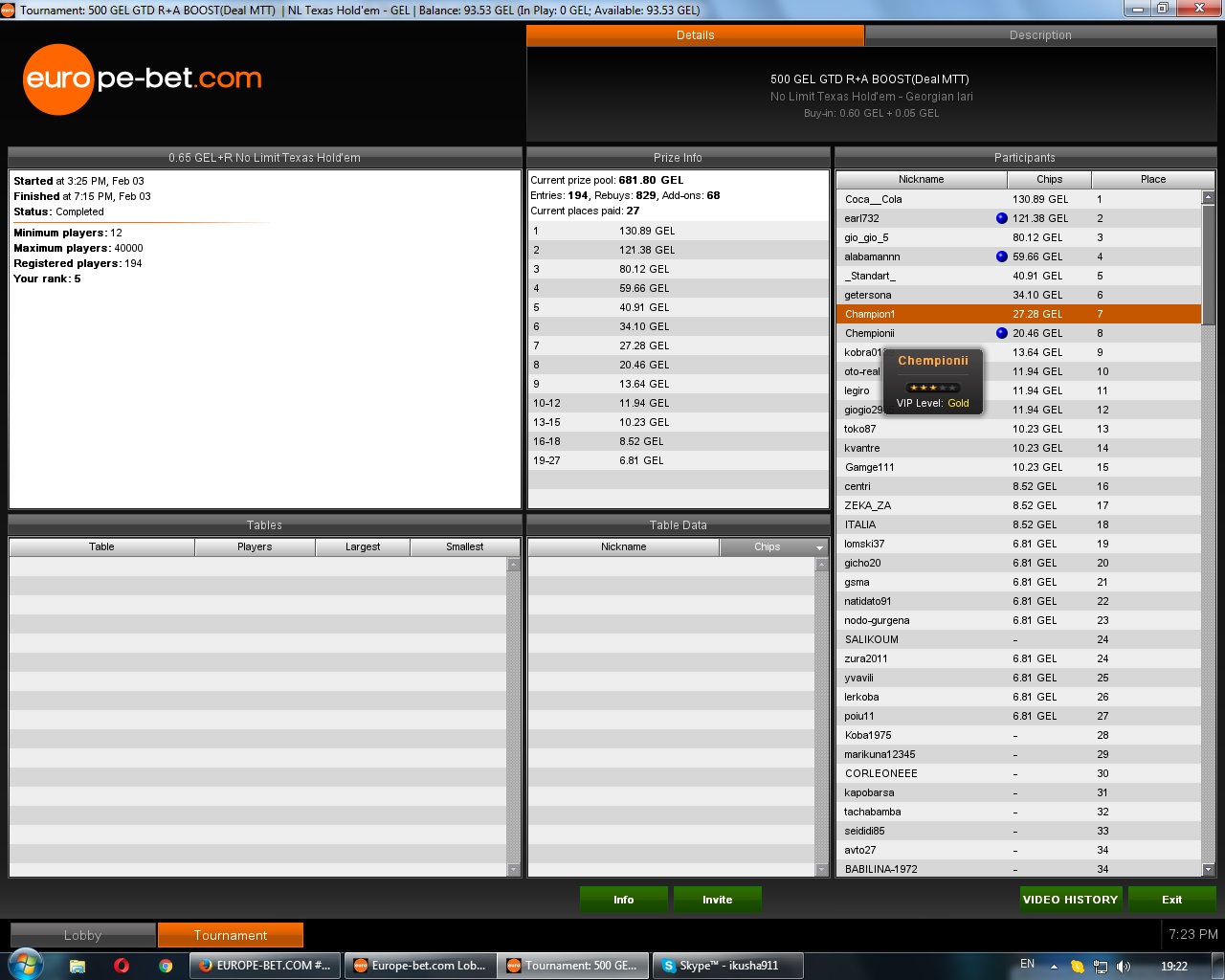 STEP1C - 0.65 ლარიანი 6 ადგილიანი 12 კაციანი შუთაუთი (თითო მაგიდის 3გამარჯვებულები ხვდებიან ერთმანეთს ბოლო მაგიდაზე