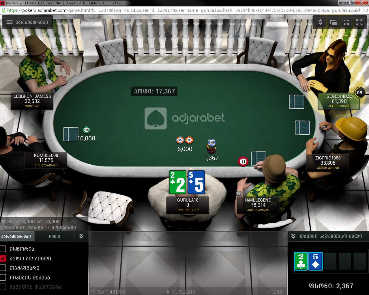 26 წევრი: POKERISBLUFF, mGeLo777, Aleqs26, davidovi, Jkzzz, HugoChavez, ASUS-TEK, Tikobucho, pokerismotamashe1, natula, PlayerUNO, mgeli75, barcafann, levani_2020, g.tolia1992, bandit7777, RVP_20, lesenidabigtiko, qqq123, Psilocybin, santaklaus, dimstera, goglikaaa, overclocker., onise1984, gucci07