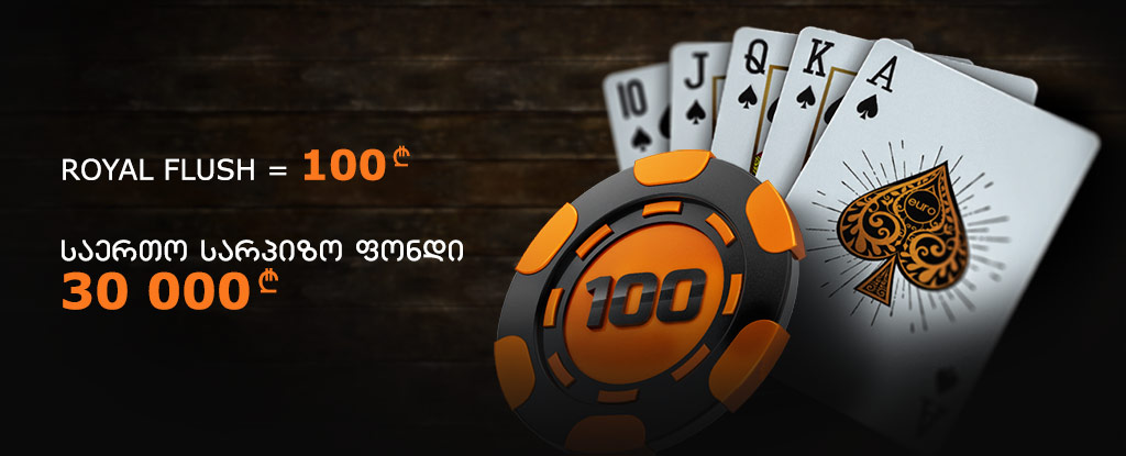 100 ლარი როიალ ფლეშის შეგროვების შემთხვევაში დაგერიცხებათ ყოველი საათის ბოლოს დაფიქსირებული კომბინაციიდან 20 წუთის ინტერვალში.