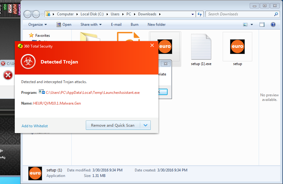 პოკერის საინსტალაციო გადმოვწერე, ტროიანს მიგდებს ანტივირუსი..