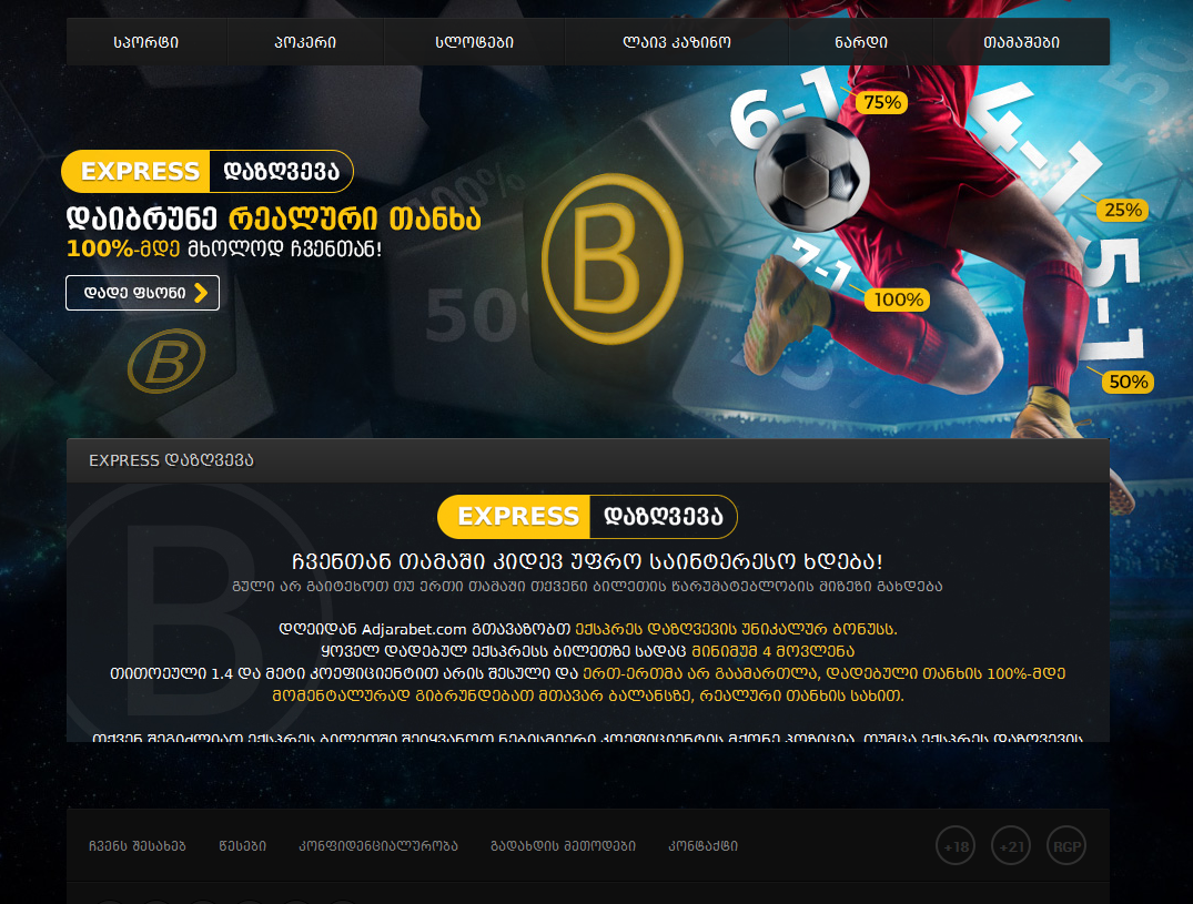 ADJARABET.COM, Express დაზღვევა, დაიბრუნე რეალური თანხა 100%-მდე