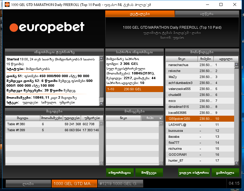 ამ წუთას ომაჰას 5 დოლარიან ტურნირში 3 გავედი 170 დოლარით