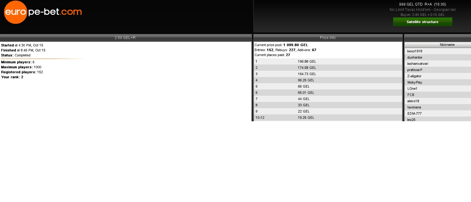 თათარი რო აწერია მასტი სითაუთში იყო ოთხჯერ მიყვანეს მეორე მაგიდაზე ოლინამდე და ოთხივე მოიგო და აეთ არ დაელოდეს და სითაუთში მყოფს მოაგებიეს ტურნირი