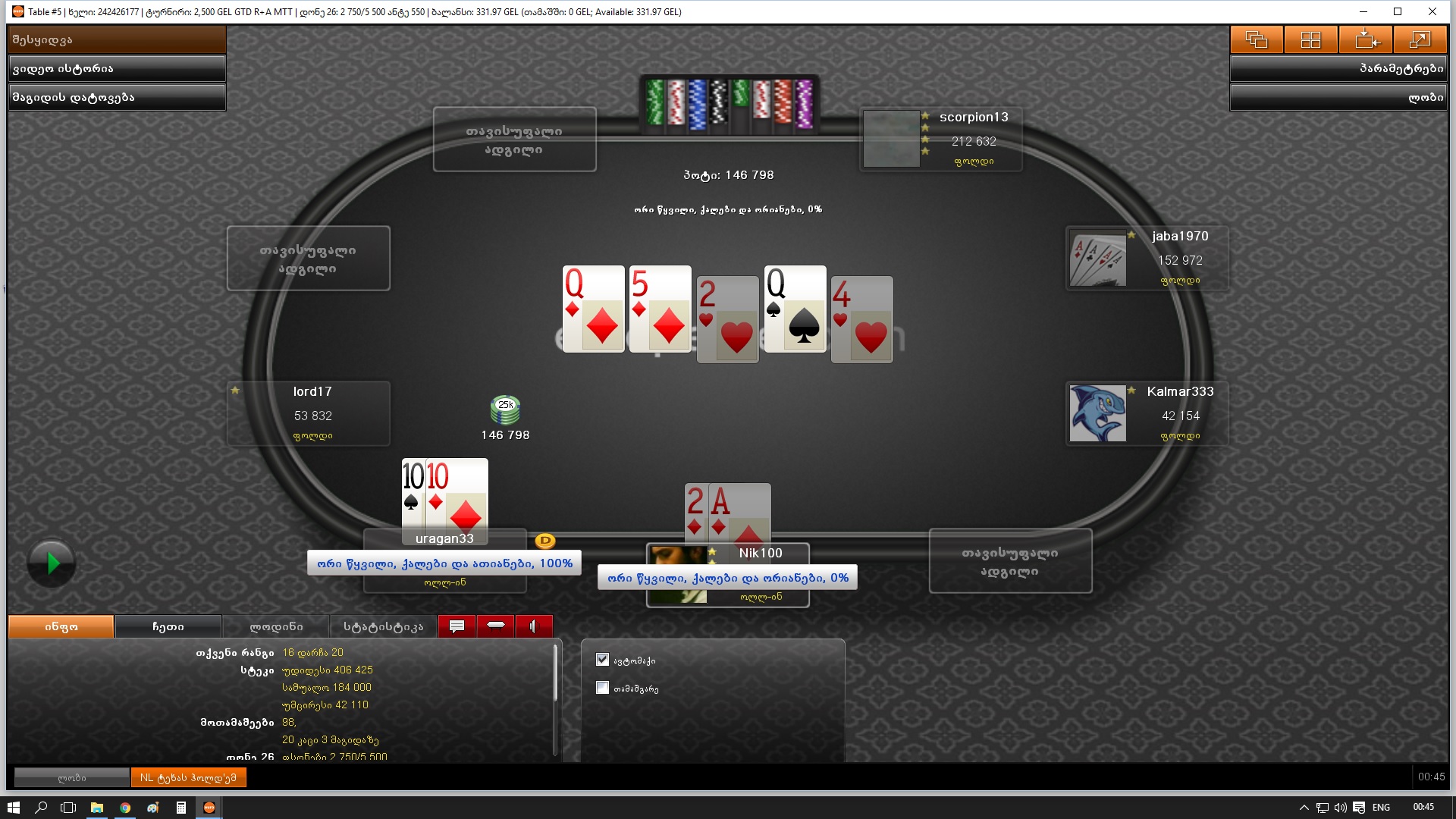 31.07.16 - 2500 GEL GTD R+A MTT (11.00₾) - 9 ადგილი (87.30₾)