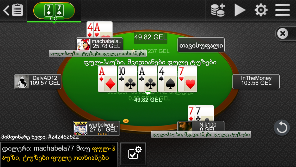 28.07.16 - 1000 GEL GTD Deep Stack (5.5₾) - 7 ადგილი (65.80₾)
