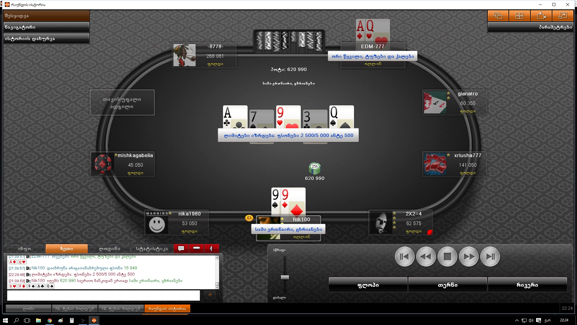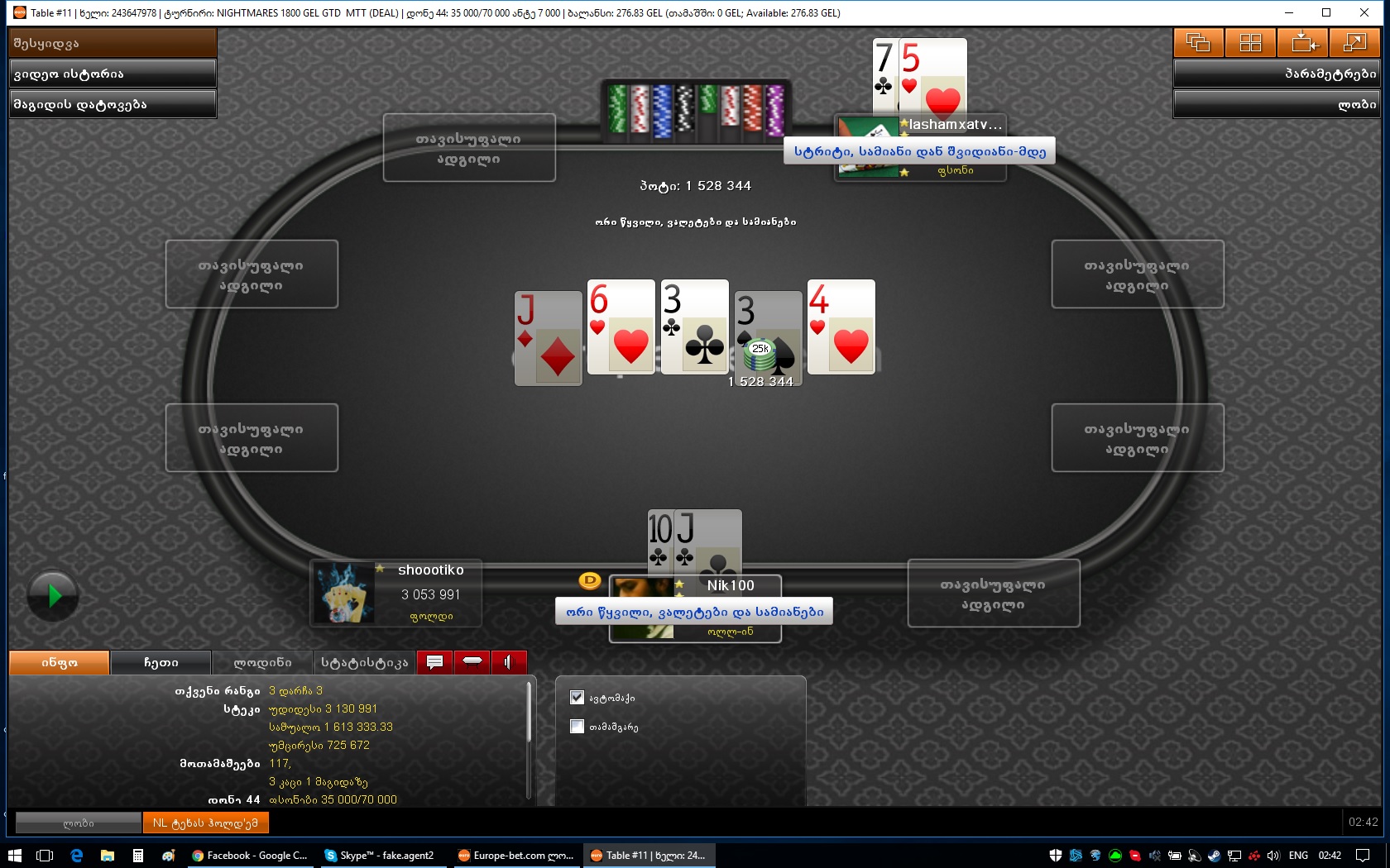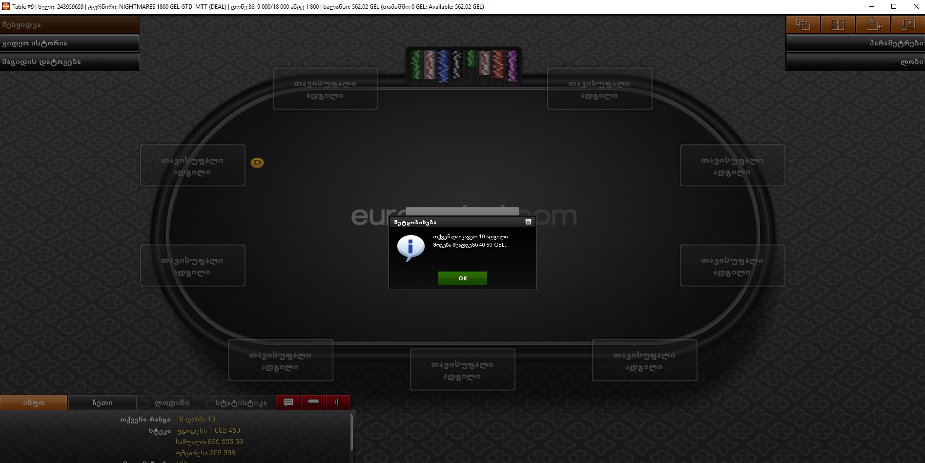 30.07.16 - 1000 GEL GTD Deep Stack (5.5₾) - 8 ადგილი (57.40₾)