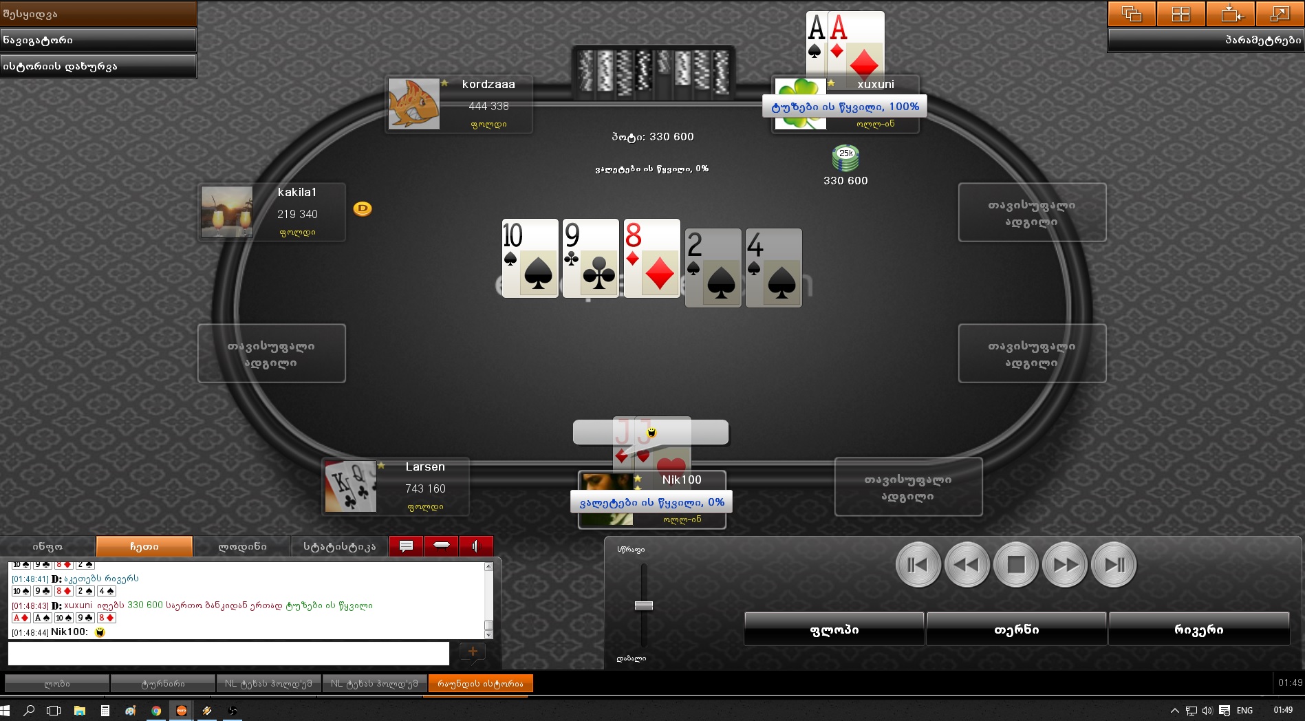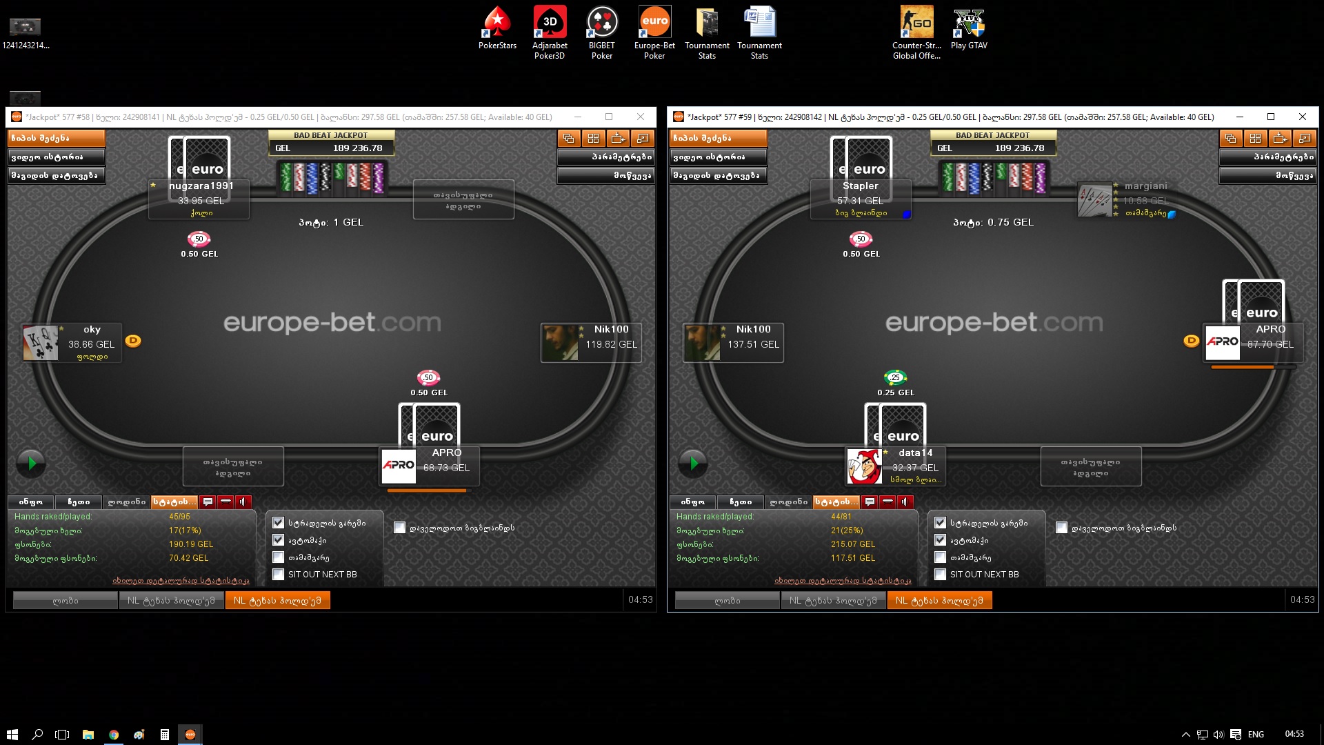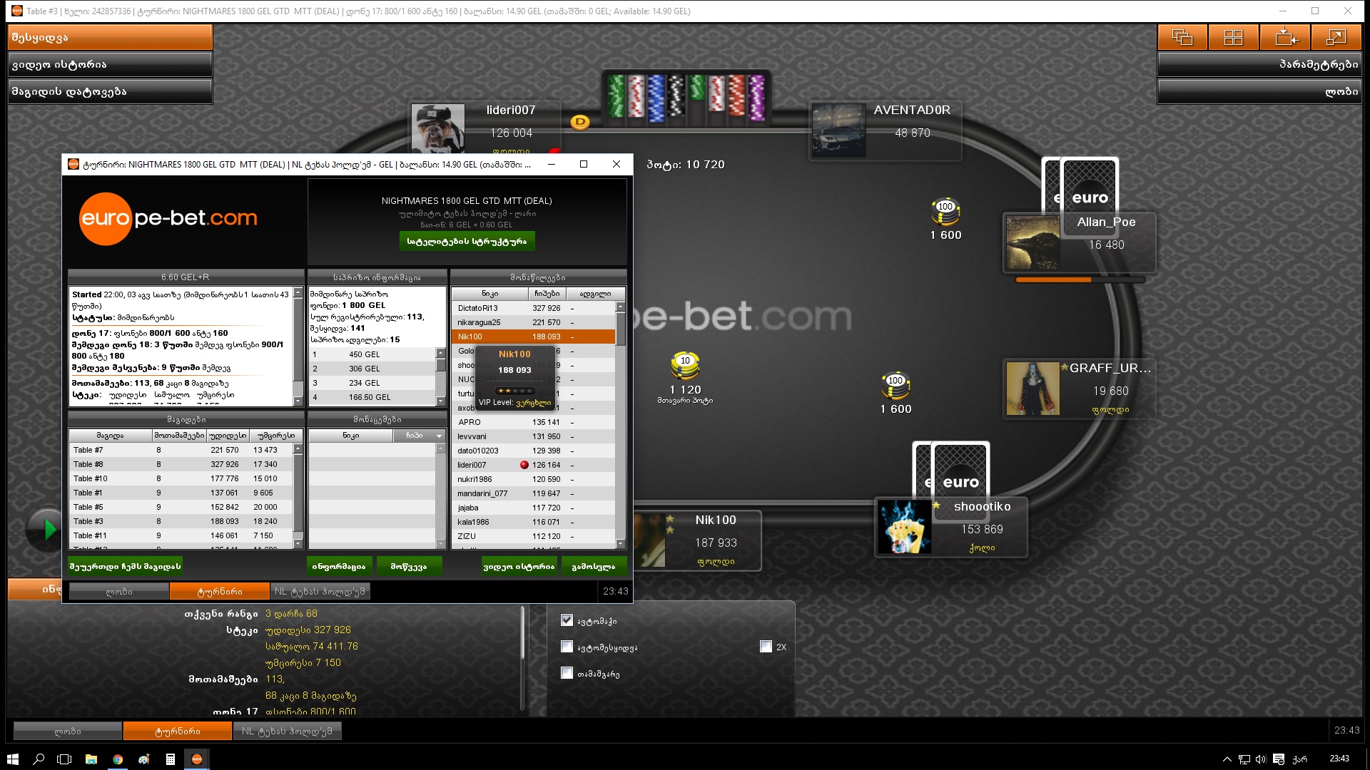 30.07.16 - 1000 GEL GTD Deep Stack (5.5₾) - 8 ადგილი (57.40₾)