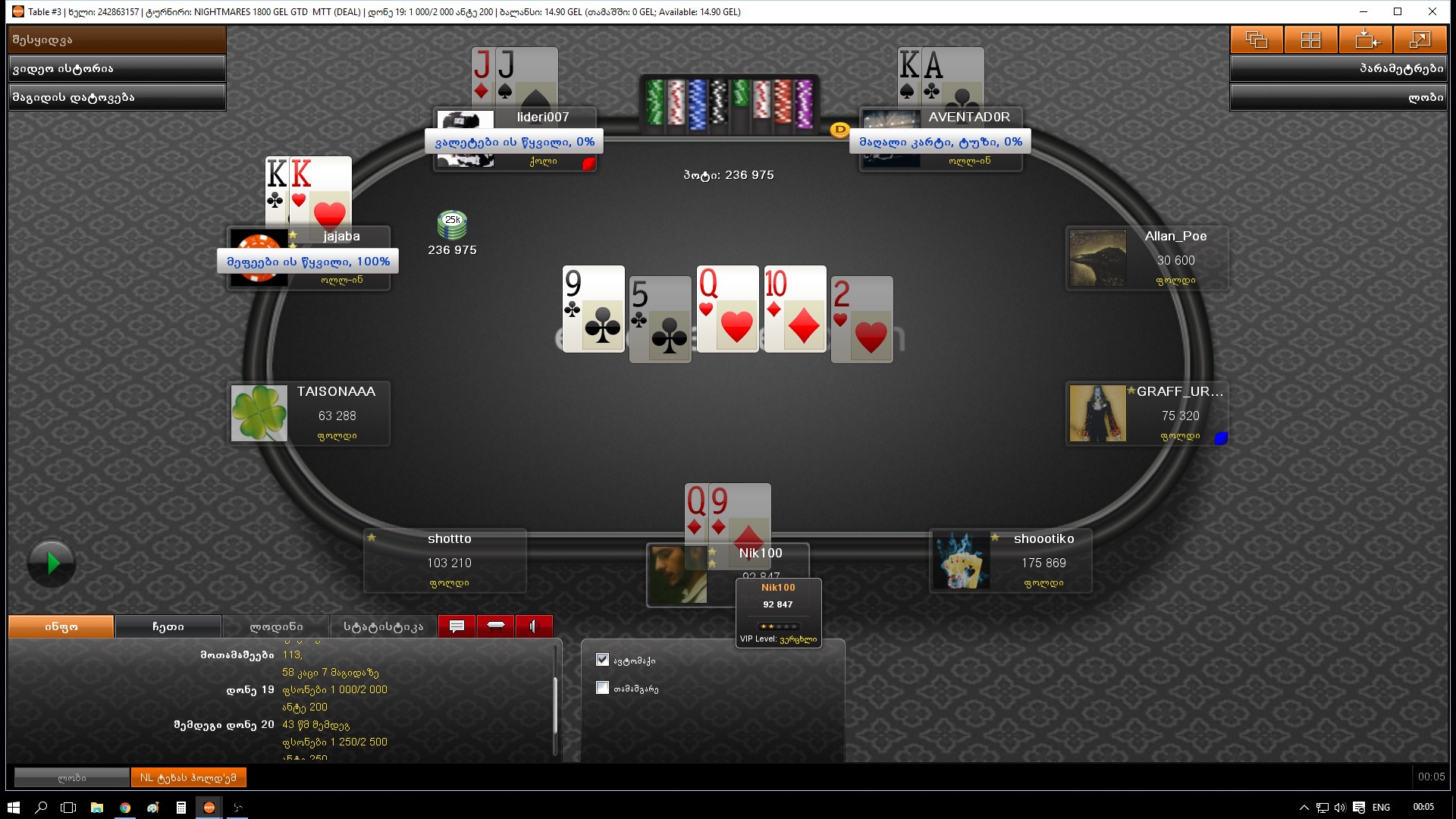 29.07.16 - 1000 GEL GTD Deep Stack (5.5₾) - 19 ადგილი (0.00 GEL)