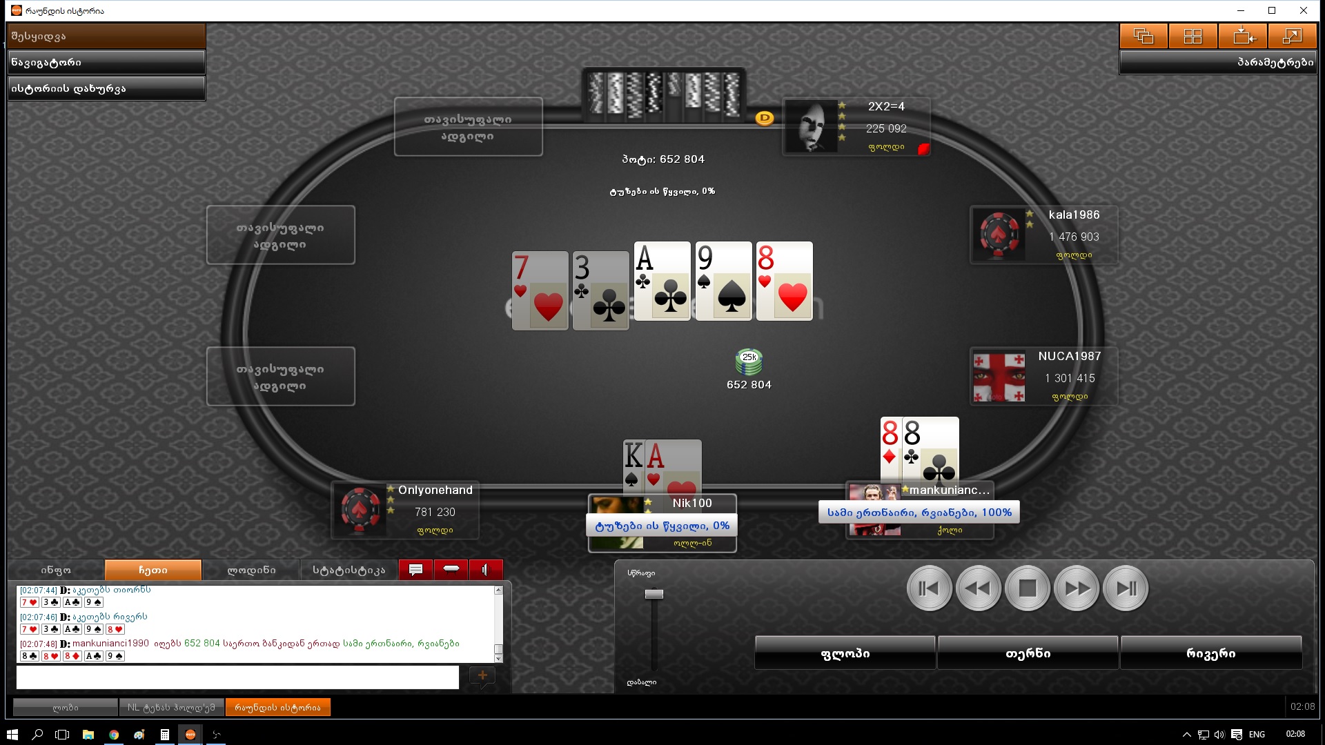 02.08.16 - 1000 GEL GTD Deep Stack (5.5₾) - 62 ადგილი (0.00₾)