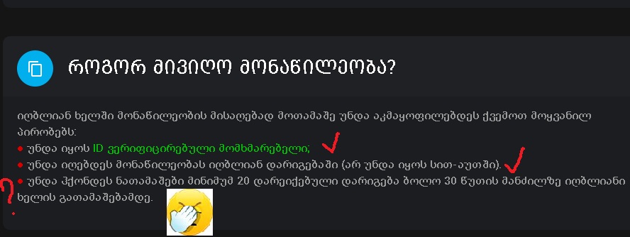 iraklious89 ის პოსტი ნახეთ ზემოთ. 3 პირობაა ჩადებული წესებში რაც სექტისთვის ნამდვილად არ არის ხელსაყრელი, ასევე უსაფრთხოება აკვირდება მაგიდებს.
