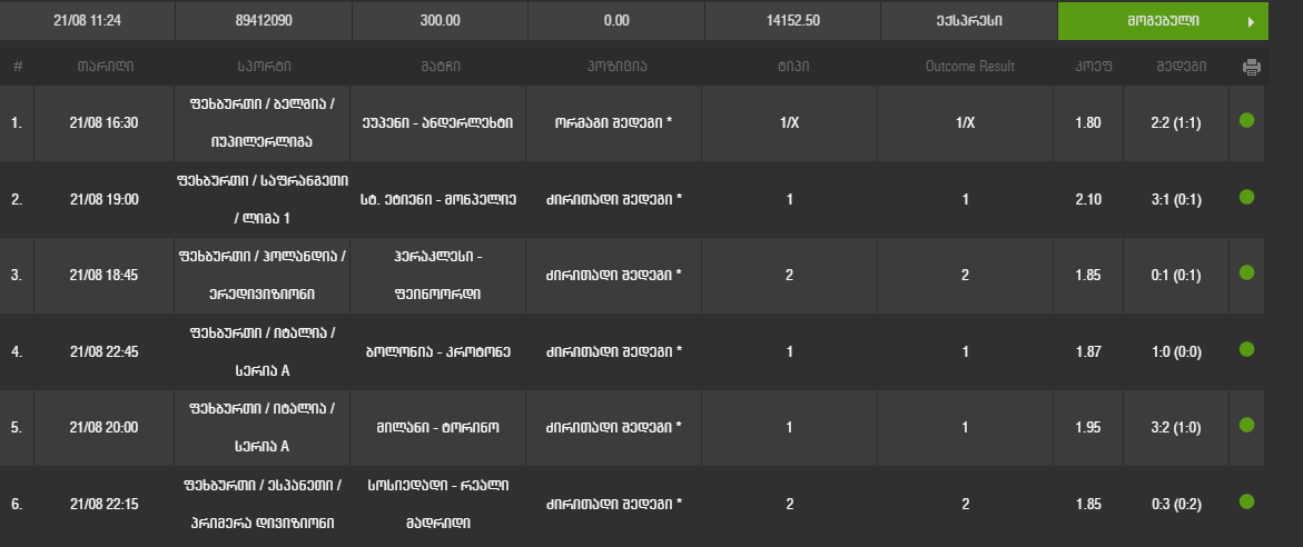 "ღმერთმა შეგარგოს კი წაგება არ გვიყვარს მაგრამ გვიხარია,როცა ჩვენი მომხმარებელი კმაყოფილია ყველას მოგებას გისურვებთ. არ გაჩერდეთ ითამაშეთ და მოგებულები დარჩებით" © tbilisibet.com