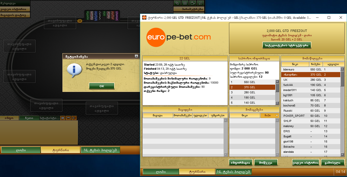 EUROPE-BET.COM №15, 13 თარსია პირდაპირ 15 ზე გადავიდეთ)