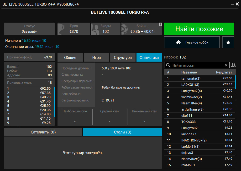 ეხლაც ხო ისტორია არ გამიხსნია, ტურნირის ლობი გავხსენი და გაითიშა პროგრამა