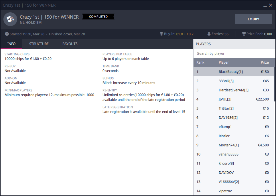 ადვილი მეგონა მანდ თამაში... მარა არ ყოფილა მასე... თუმცა ისეთი კარგი სტრუქტურა აქვს ზოგ ტურნირს რომ სწავლის პონტში მაინც +EV-ია...