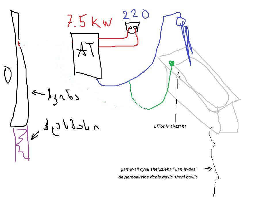 როგორც იცი 220 ვოლტი მოდის ბინებში 2 მავტულით, ფაზით და ნოლით.