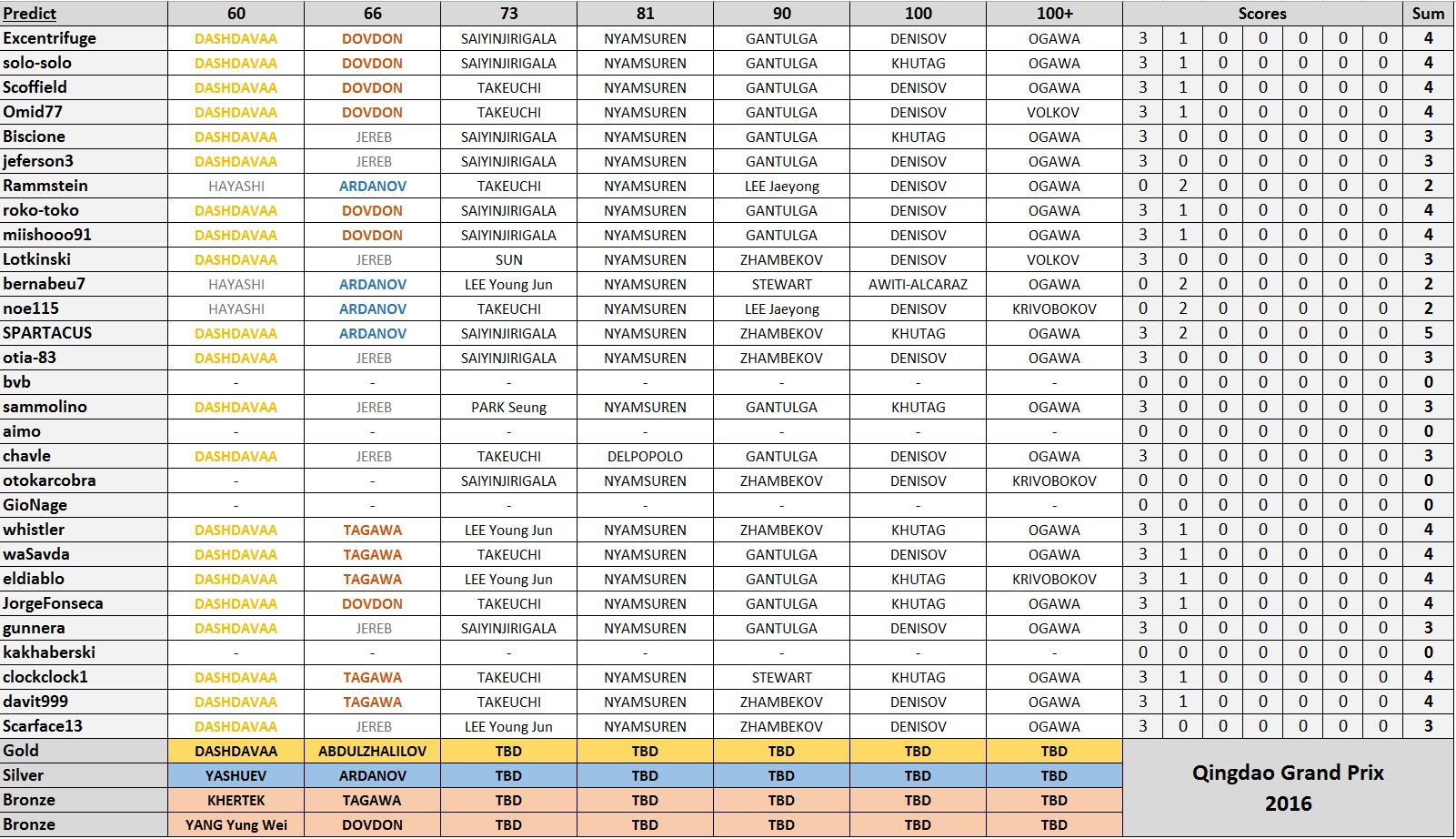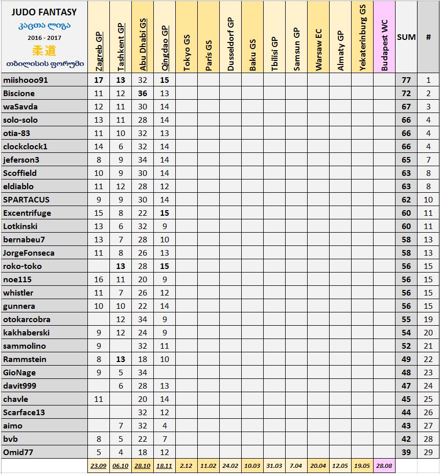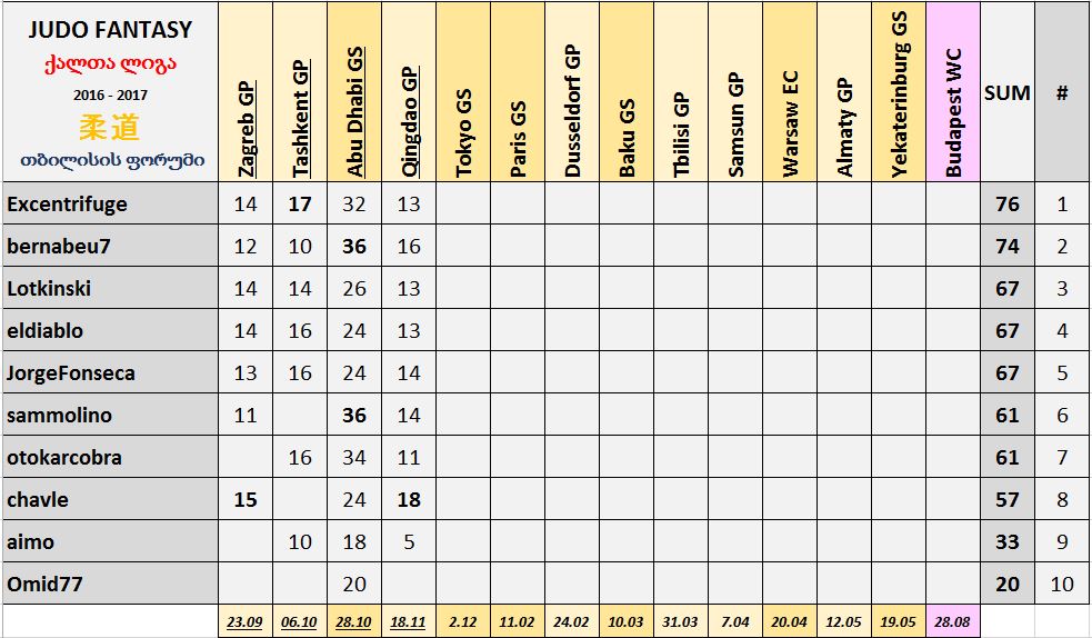 მთელი გუნდის ჩამოწერა გუშინ ვერანაირად მოვახერხე, თან ippon.tv-ის მიხედვითაც გვიან უნდა დაწყებულიყო, იმედია პობლემა არ იქნება.