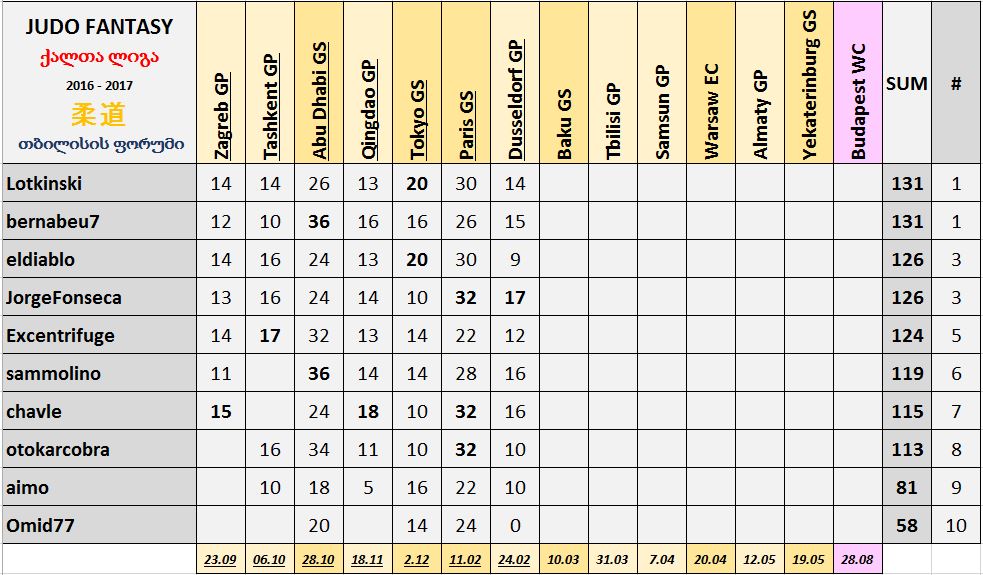ძიუდოს პროგნოზის ლიგა, თამაში 2