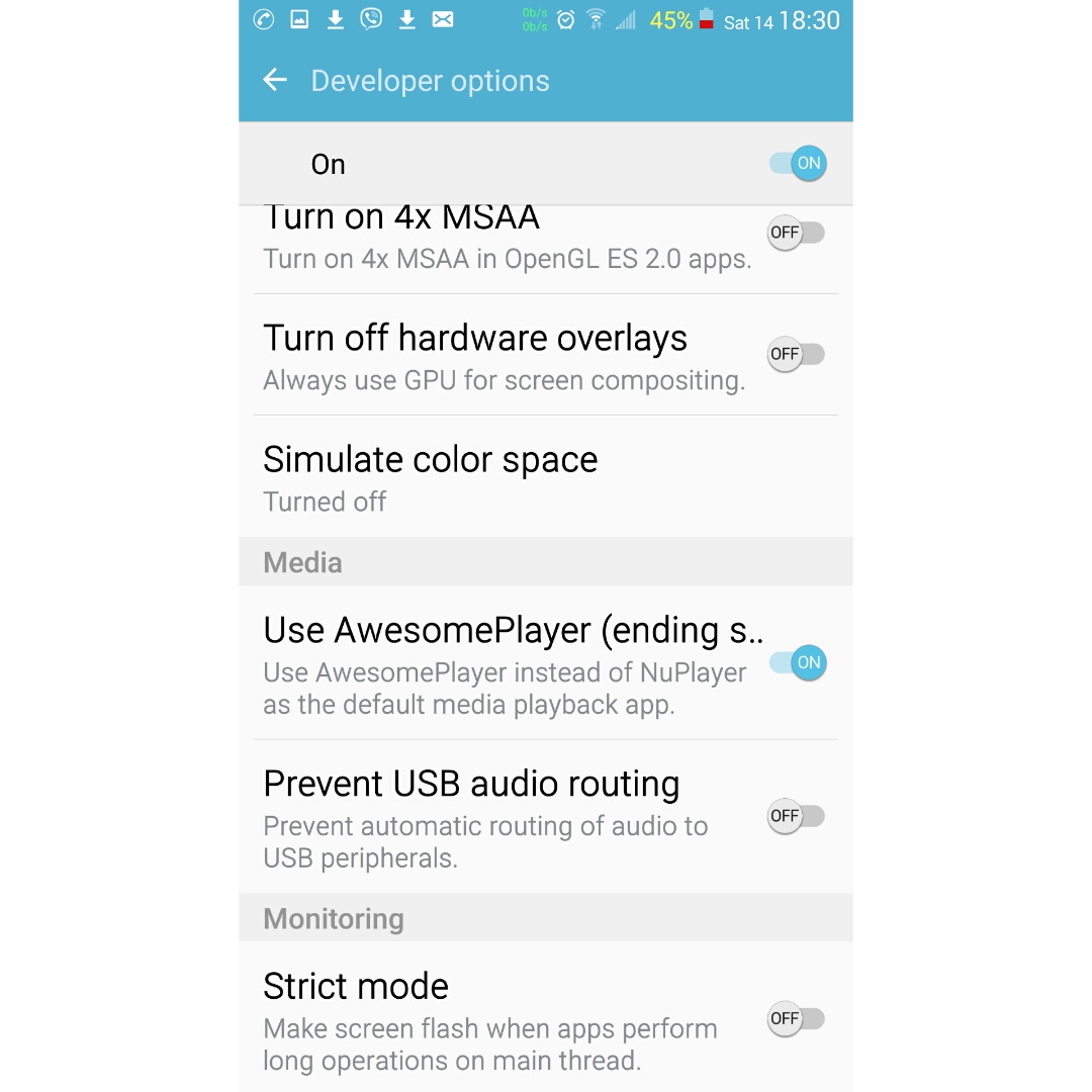 დეველოპერ ოპშენში შედი და use awsome player მონიშნე მერე გადატვირთე