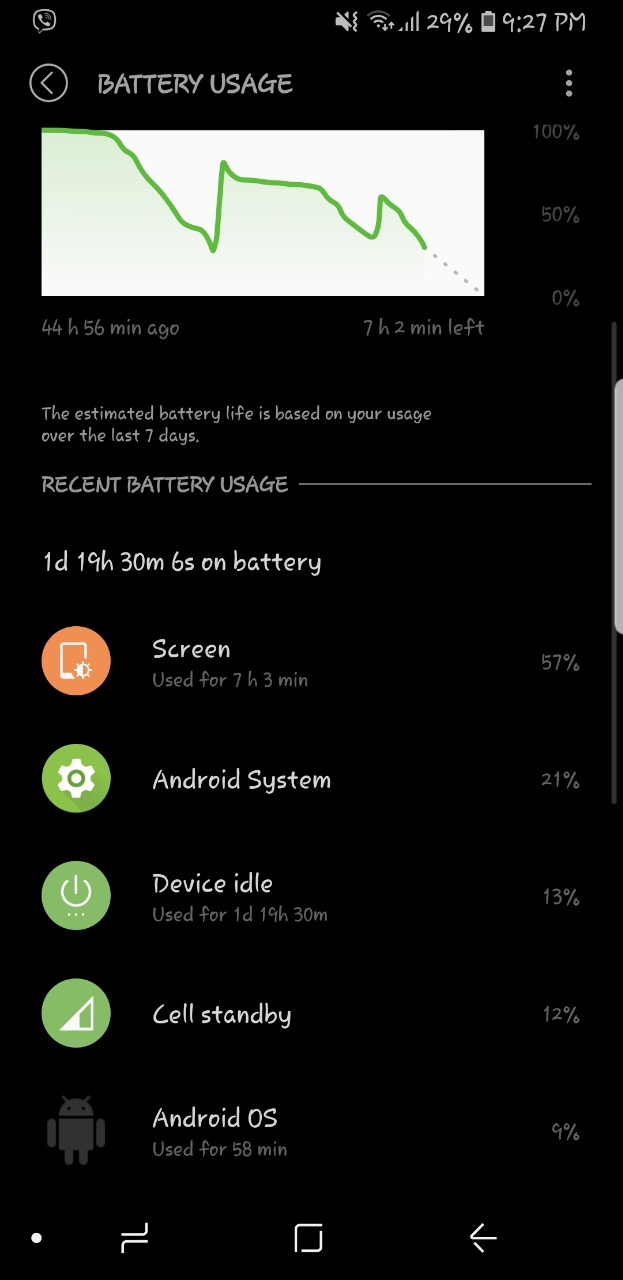 ჩემზე რაღაც 7 ვეღარ მოვხოდე შეიძლება package disablerის ბრალია, მარტო app managerიდან მქონდა გათიშული მაშინ ყოველ 2 დღეში 7-8 საათს რომ დებდა.