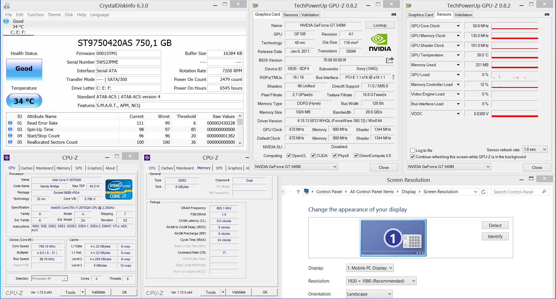 CPU: Intel® Core™ i7-2670QM Processor (6M Cache, up to 3.10 GHz, Cores 4 - Threads 8)
