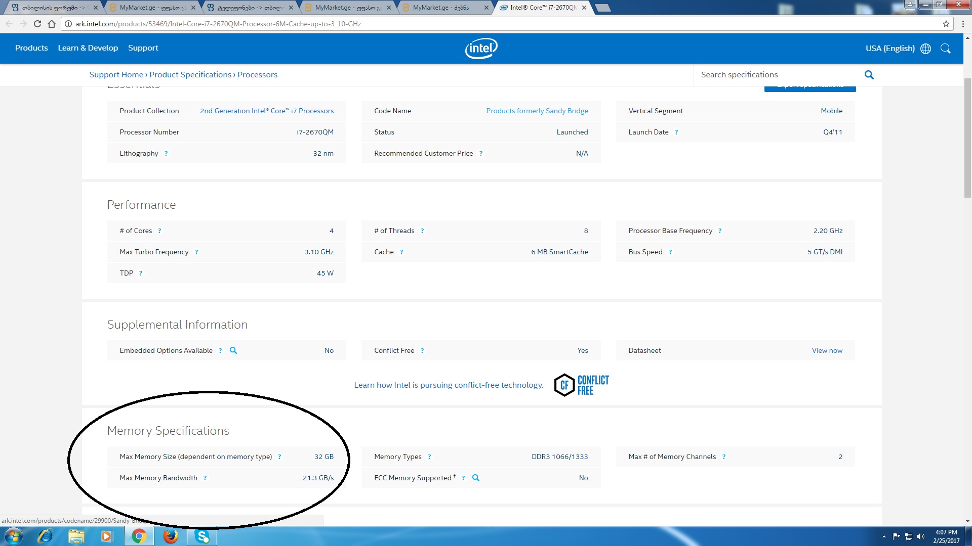 პროცესორი - I7 2670QM 4ბირთვი/8ნაკადი 2.2GHZ turbo boost 3.0