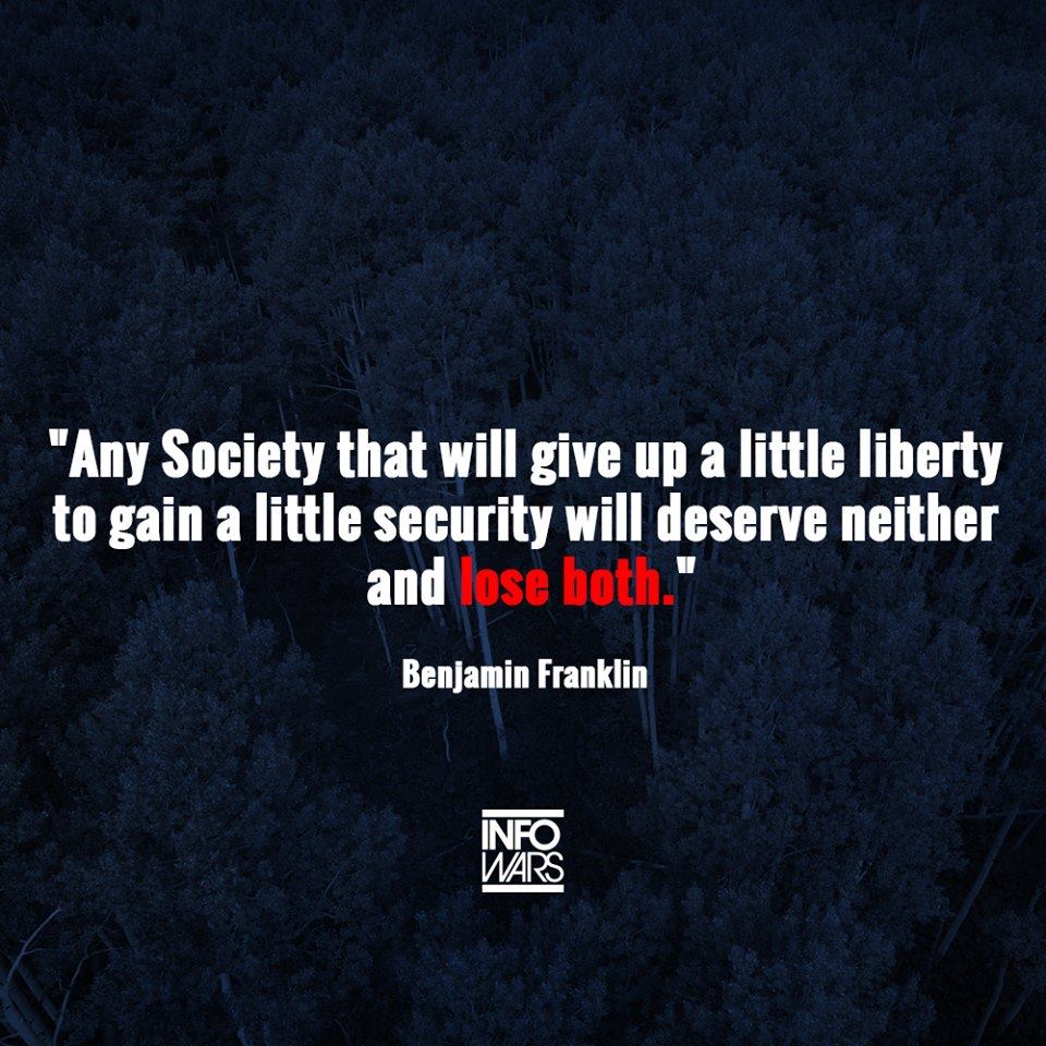 ‘‘They that can give up essential liberty to obtain a little temporary safety, deserve neither liberty nor safety.’’ – Ben Franklin