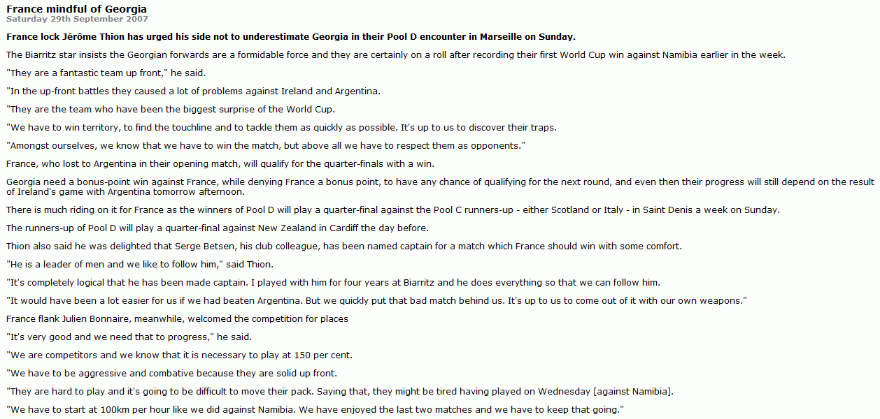 საქართველო - საფრანგეთი (რაგბი), 30 სექმტებერს