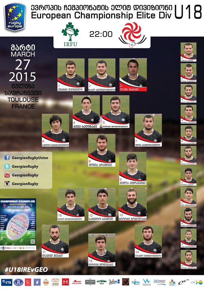 IRELAND UNDER-18 SCHOOLS Team & Replacements (v Georgia Under-18s, 2015 Rugby Europe Under-18 European Championship Elite Quarter-Final, Montauban, France, Friday, March 27, kick-off 7pm local time/6pm Irish time):
