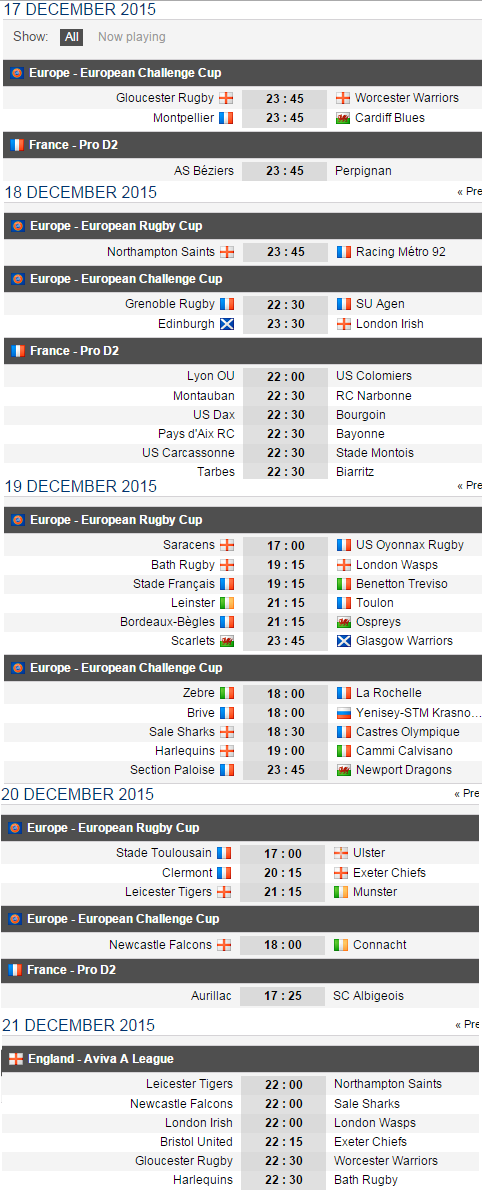 ჩემპიონიც სამივეგან შეიცვალა, ორივე ევრო’ტურნირი დაპულდაhttp://Qaflan.netai.net/2015საფრანგეთში წრიული რაუნდი ოთხით მეტია ბრიტანეთზე და პლეი’ოფიც ერთი ეტაპით გრძელია, რის გამოც რაგბი აგვისტოს პაპანაქებაში იწყება და ფინალიც ივნისში გადადის.
