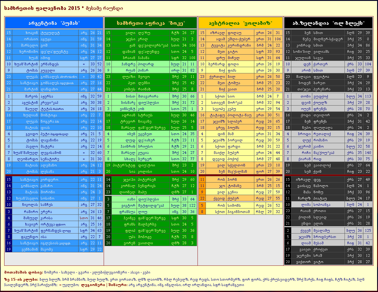 35 წლის მაკ’ქოუ 141-ე კეპს მოიხვეჭს და გაუტოლდება ირლანდიელ ბრაიან ო’დრისქოლს. არგენტინას ეცმევა საგანგებო კვართი, რათა 1965 წელს, რასისტულ რესპუბლიკაში პირველი ჩასვლისა და თიკუნად "პუმების" დადგინების ნახევარ’საუკუნოვანი იუბილე აღნიშნოს, ხოლო მგეზავად დასვენებულ ხუან’მარტინ ერნანდესს აწყებინებს.