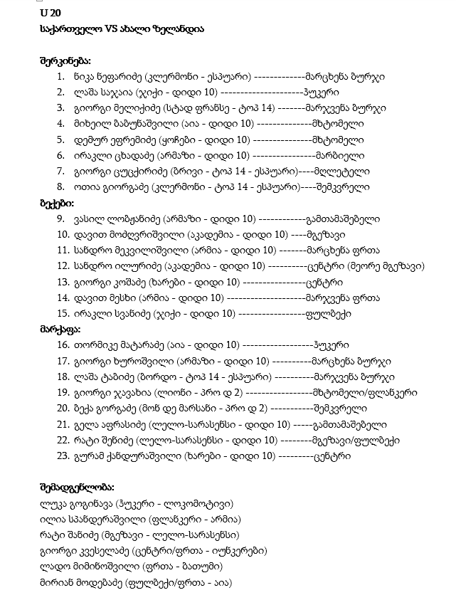 ვსერჩე და ესეც ბოლო პერიოდში გამოცდილ-გამოძახებული U 20