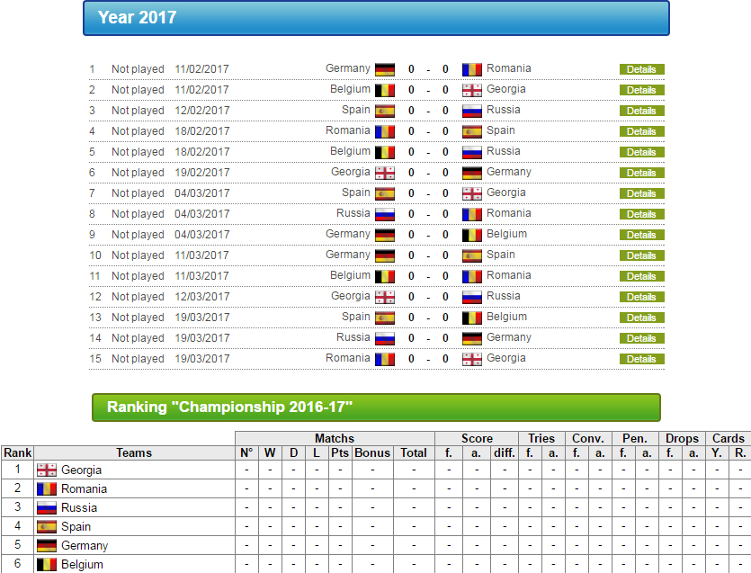 2017 * რაგბი ევროპა, ( ყოფილი ერთა თასი )