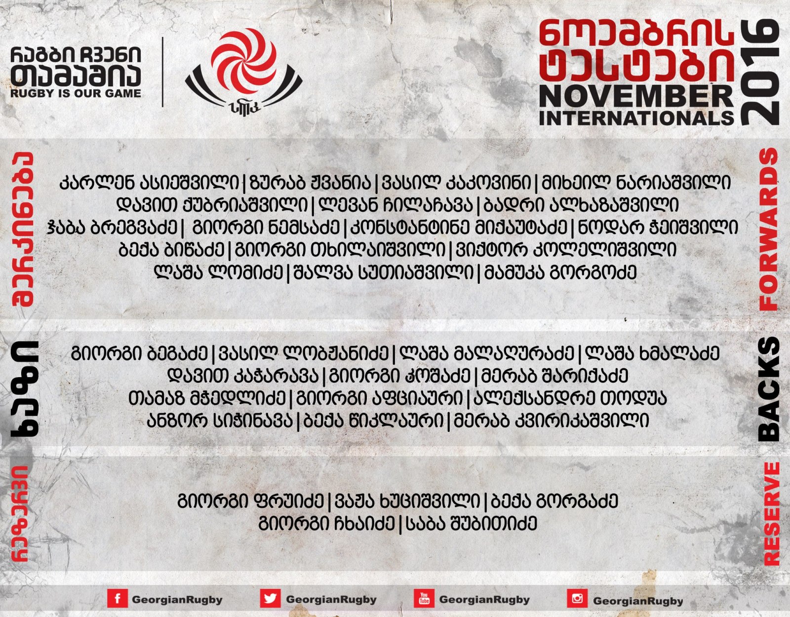 მესამე ხაზი - გორგოძე, სუთიაშვილი, კოლელიშვილი, თვილაიშვილი, ლომიძე, ბიწაძე