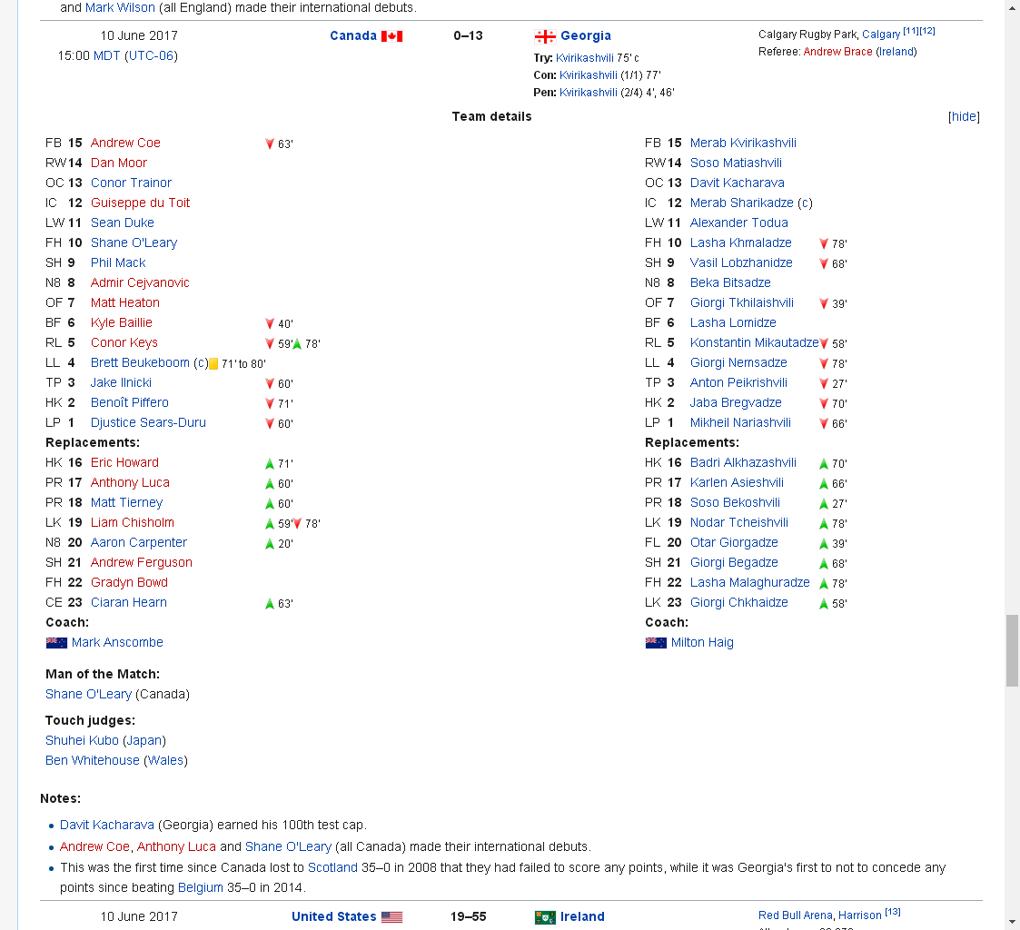 ივნისის ტესტი: კანადა vs საქარველო, ბორჯღალოსნების ივნისის ამერიკული ტურნე - 2017