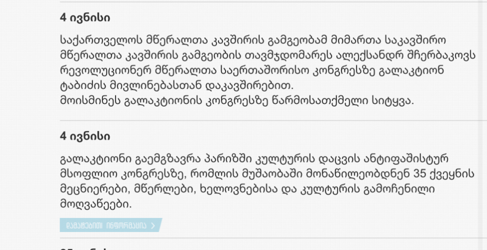 https://marinagra.livejournal.com/93276.html გალაკტიონი კი, ცნობილია, რომ საფრანგეთის მოკლე საბჭოური ვიზიტის გარდა, საბჭოთა ქვეყნის გარეთ, უცხოეთში მეტი არსად ყოფილა.
